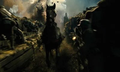 Lives were changed overnight; no matter the background, belief, or traditions, the war’s firm grasp was just too overbearing, and I believe that’s one of the aspects that this movie touches on the best. The war was known to take, and take it did with lives lost, families broken, bonds destroyed, and in many cases, hope being completely lost. Consequently, Joey’s life quickly changed under the command of Captain Nicholls, going from a treasured stallion to one of the many rugged horses in the British cavalry, showing not only just how sudden a human’s life changed during these treacherous times, but even an animal’s. But I also believe “War Horse” does an incredible job of showing just how warfare was changing and how quickly horseback warfare had begun to become almost obsolete when it came to sharing the same battlefield with tanks, machine guns, and newfound strategies and tactics centered around these implementations.
